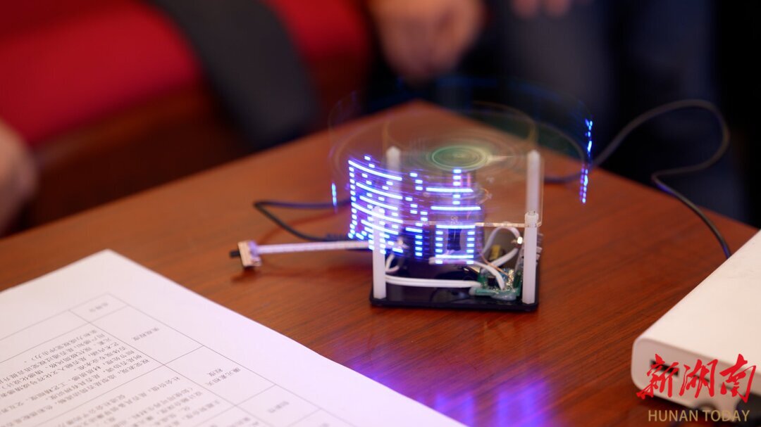 作品《POV清廉光立方》将科技与艺术结合,利用POV旋转显示技术,在绚丽的三维光效中巧妙编码廉洁警示语。当光立方旋转起来,那些闪烁的警示语如同警钟长鸣,时刻提醒着开发者在编程过程中要自律自省,实现了科技与廉洁教育的深度互动。