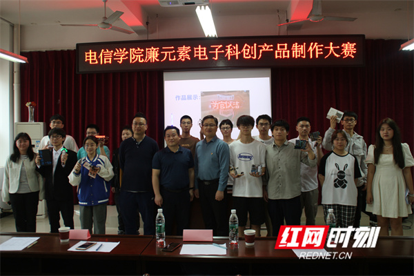 “廉元素”电子科创产品制作大赛便是长沙学院“深入推进清廉建设,营造校园清风正气”的生动实践。此次大赛巧妙地将“廉文化”与工科学院的特色学情结合在一起,有效破解了“廉文化”宣教与学科知识运用“两张皮”的现象,极大激发了师生的参与热情。在活动过程中,师生以“把论文写在祖国大地上,将产品应用于生活中”为出发点,灵活运用所学专业知识设计并创作出各式各样“廉元素”电子科创产品。
