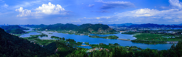 其次,湘湖和西湖的地理形势也颇为相似。湖面均被群山环抱。湘湖周边群峰起伏,山坞幽深,湖傍山走,山中藏湖。明代大哲学家王阳明曾有诗云:“好山兼在水云间,如此湖须如此山。”